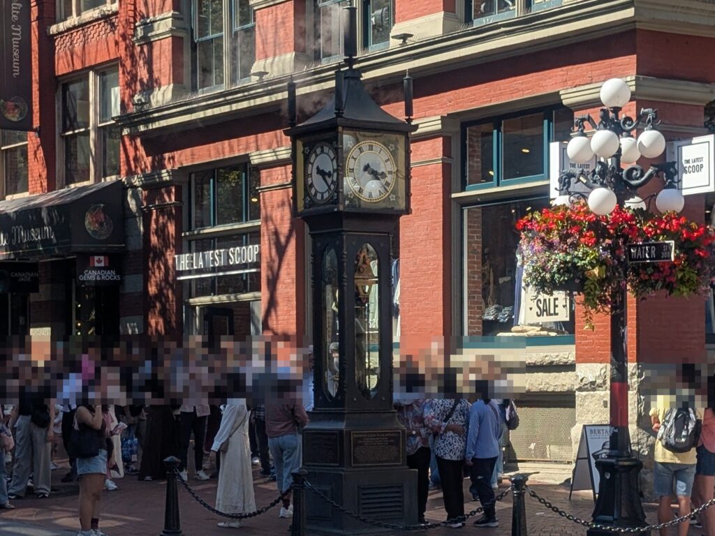「バンクーバーといえば!」というほど有名な観光名所。ガスタウンの街角にある蒸気時計は、定期的に蒸気で音楽を奏でます。